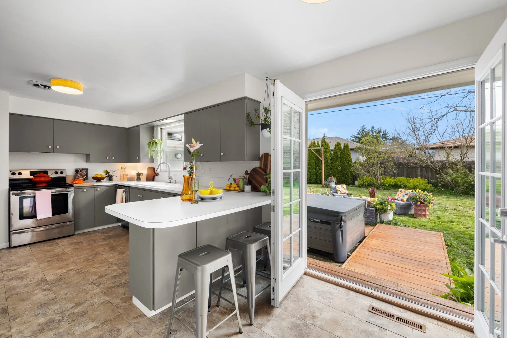 Outside, it only gets better: a fully fenced, 100% private landscaped yard ready for gardening, gathering, or unwinding in your saltwater hot tub under the stars. Solid, spacious, and giving just the right amount of fabulous.