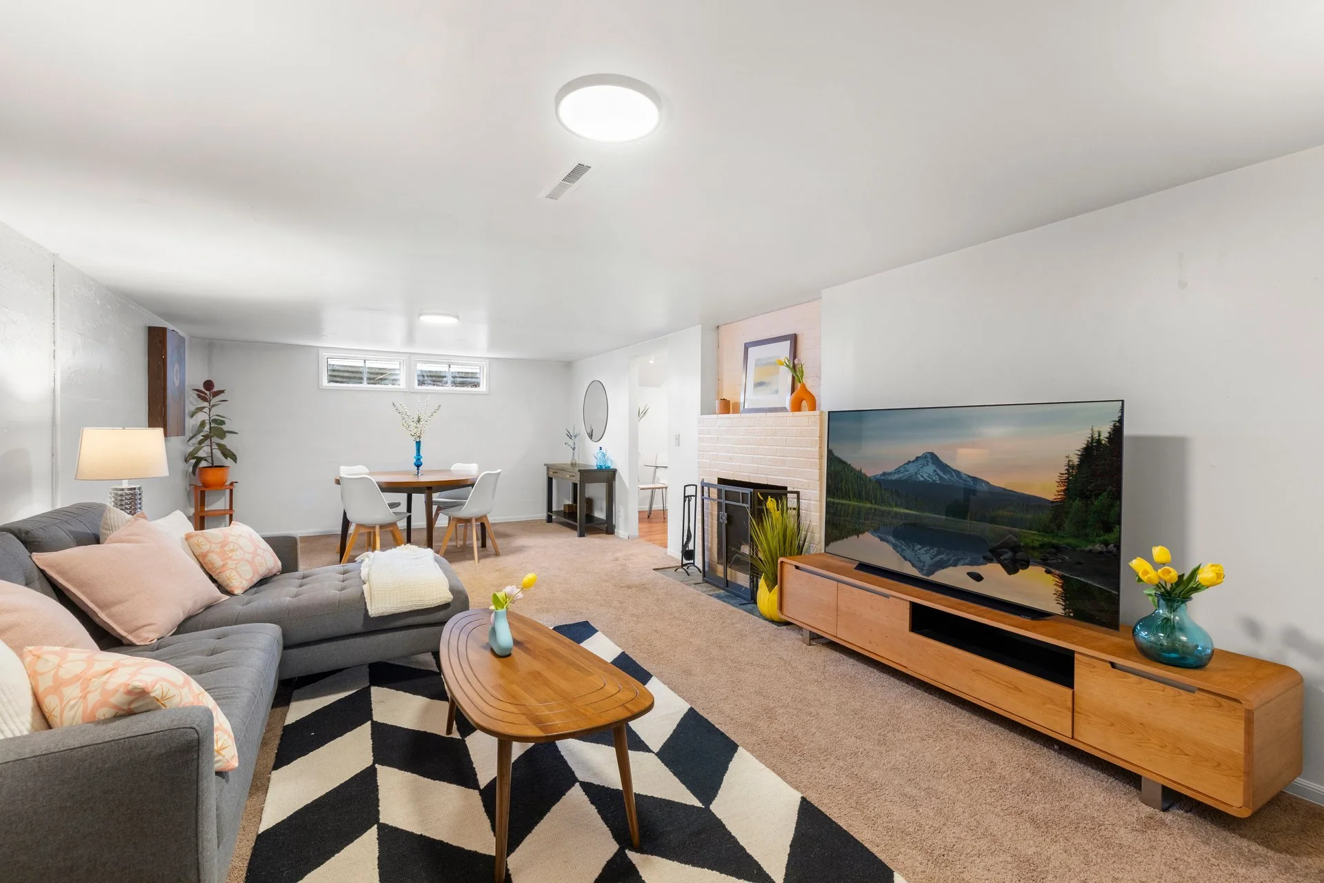 In an upstairs full of hardwood floors, a massive picture window steals the show, pouring in sunset light like it’s on cue. A main bath so spacious, you could practically go bowling in it. The lower level has its own separate entrance, and she’s versatile, honey! Kitchenette, 2nd living room with functional fireplace, full bath, additional bedroom, office and laundry room.